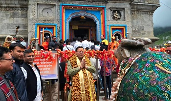एक दिवसीय दौरे पर बाबा केदारनाथ धाम के दर्शनों को पहुंचे मुख्यमंत्री  पुष्कर सिंह धामी का कमिश्नर गढ़वाल विनय शंकर पांडे, आईजी पुलिस गढ़वाल करन सिंह नगन्याल, जिलाधिकारी डॉ सौरभ गहरवार एवं पुलिस अधीक्षक डॉ विशाखा ने वीआईपी हैलीपैड पर उनका स्वागत किया। इसके बाद, मुख्यमंत्री तीर्थ पुरोहित समाज एवं मुख्य पुजारी से मिले। मुख्यमंत्री ने बाबा केदारनाथ मंदिर में प्रवेश कर विशेष पूजा अर्चना एवं रुद्राभिषेक कर संपूर्ण विश्व एवं मानवता के कल्याण की कामना की। इस दौरान उन्होंने उत्तराखंड के सतत विकास के लिए भी बाबा केदार से आशीर्वाद मांगा। करीब 20 मिनट पूजा के बाद मुख्यमंत्री ने धाम में दर्शन करने पहुंचे श्रद्धालुओं एवं स्थानीय लोगों का अभिवादन कर श्रावण मास की शुभकामनाएं दीं। मुख्यमंत्री ने धाम के मुख्य पुजारी शिव शंकर लिंग का आशीर्वाद प्राप्त किया, साथ ही तीर्थ पुरोहितों के साथ धाम में चल रहे निर्माण एवं अन्य कार्यों के संबंध में चर्चा कर सुझाव मांगे। उन्होंने केदारपुरी में चल रहे पुनर्निर्माण कार्यों की समीक्षा करते हुए निर्माण एवं पुनर्निर्माण कार्यों में तेजी लाने एवं गुणवत्ता का ध्यान रखते हुए समयबद्धता के साथ सभी कार्य पूर्ण करने के निर्देश दिए।
