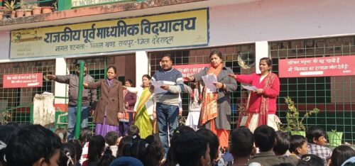 अभ्युदय वात्सल्यम् संस्था की अध्यक्ष गार्गी मिश्रा तथा राजकीय पूर्व माध्यमिक विद्यालय के प्रधानाध्यापक श्री आर.एस.पाल एवं राजकीय प्राथमिक विद्यालय की प्रधानाध्यापिका श्रीमती अनामिका रौतेला द्वारा उपस्थित छात्र- छात्राओं को उत्तराखंड राज्य हेतु “पंच शपथ” दिलाया गया…..