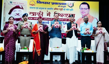 देहरादून। मुख्यमंत्री पुष्कर सिंह धामी ने शनिवार को सर्वे चौक, देहरादून स्थित आई.आर.डी.टी सभागार में उत्तराखण्ड के पूर्व पुलिस महानिदेशक अनिल रतूड़ी द्वारा लिखित पुस्तक ‘‘खाकी में स्थितप्रज्ञ’’ का विमोचन किया। अनिल रतूड़ी ने यह पुस्तक एक आईपीएस अधिकारी के रूप में अपने संस्मरण एवं अनुभव के आधार पर लिखी है। मुख्यमंत्री पुष्कर सिंह धामी ने कहा कि अनिल रतूड़ी द्वारा इस पुस्तक के माध्यम से एक पुलिस अधिकारी के रूप में अपने सेवाकाल के संस्मरणो, अनुभवों और चुनौतियों को रोचक तरीके से प्रस्तुत किया है। उन्होंने कहा कि सफलता और असफलता दोनों में एक समान रहना स्थितप्रज्ञ है। यह पुस्तक सेवा में आ रहे लोगों को निर्णय लेने में मदद करेगी। मुख्यमंत्री ने कहा कि जब हमें एहसास होता है कि धरा पर कोई हमारा साथ देने वाला नहीं, तब हम धरातल से ऊपर उठकर सीधे प्रभु से संबंध वाली स्थिति में आते हैं, यह भी स्थितप्रज्ञ है। ऐसा प्रभु की कृपा से ही संभव है।