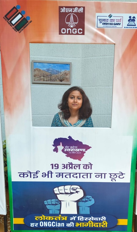 इस अवसर पर ओएनजीसी के अधिशासी निदेशक आनंद गुप्ता P&D द्वारा जिला निर्वाचन टीम का धन्यवाद देते हुए उपस्थित समस्त अधिकारी/कर्मचारी से मतदान की अपील की गई। अंत में सभी के द्वारा मतदाता जागरूकता संबंधी सेल्फी भी ली गई।