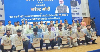देहरादून : देहरादून के सर्वे ऑफ इंडिया ऑडिटोरियम में राजस्व विभाग, सीबीआईसी द्वारा शनिवार को ‘रोजगार मेले’ के 15वें चरण का आयोजन किया गया। प्रधानमंत्री श्री नरेंद्र मोदी ने वीडियो कॉन्फ्रेंसिंग के माध्यम से आयोजन को संबोधित किया और देश भर के 47 स्थानों पर 51,000 से अधिक चयनित उम्मीदवारों को नियुक्ति पत्र सौंपे।