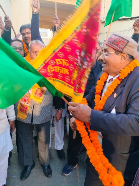 *देवभूमि उत्तराखंड के समाजसेवियों ने हरी झंडी दिखाकर अग्रोहा धाम यात्रा के यात्रियों को किया रवाना *आज प्रातः अखिल भारतीय अग्रवाल सम्मेलन, उत्तराखंड की अग्रोहा धाम की यात्रा की बस को देहली से पधारे श्री विक्रांत गुप्ता, देवभूमि उत्तराखंड के सुप्रसिद्ध समाजसेवी चंद्रगुप्त विक्रम, रामगोपाल गुप्ता, सुप्रसिद्ध वास्तुविद डॉ सतीश अग्रवाल, दीपक गुप्ता, धन प्रकाश गोयल , घनश्याम अग्रवाल, विधायक प्रतिनिधि विशाल गुप्ता, उत्तराखंड इंडस्ट्रीयल चैंबर के सचिव विकास गुप्ता, शिक्षाविद डा० सुनील अग्रवाल,बालेश गुप्ता, कुलभूषण अग्रवाल,नितिन जैन, डा० विश्व रमन, ऋतु गोयल आदि महानुभावों ने हरी झंडी दिखाकर सभी तीर्थ यात्रियों को मंगल कामनाएं देकर विदा किया। इस अवसर पर यात्रा का महत्व बताते हुए अतिथि गणों में विक्रांत गुप्ता, चंद्रगुप्त विक्रम तथा डॉ सतीश अग्रवाल ने शुभ नारियल फोड़कर सभी यात्रियों की सुखद यात्रा की कामना की। ज्ञातव्य है कि अखिल भारतीय अग्रवाल सम्मेलन के राष्ट्रीय संगठन मंत्री तथा प्रदेश अध्यक्ष योगेश अग्रवाल के नेतृत्व में देवभूमि उत्तराखंड से एक बस तथा दो कारों में साठ यात्रियों ने अग्रकुल शिरोमणि भगवान अग्रसेन जी की जन्म एवं कर्मभूमि अग्रोहा धाम तथा कुलदेवी महालक्ष्मी एवं माता बनभौरी तीर्थ यात्रा का संकल्प लिया था।इस उद्देश्य की पूर्ति हेतु आज दिनांक 24 दिसम्बर 2023 रविवार को प्रात: 8.00 बजे शिवाजी धर्मशाला, देहरादून से यात्रा का शुभारंभ किया गया । इस यात्रा में देवभूमि उत्तराखंड के वरिष्ठ एडवोकेट विजय कुमार गुप्ता,निर्वतमान पार्षद राकेश पंडित,जसपुर से राष्ट्रीय संगठन मंत्री डॉ० आशु सिंघल, राष्ट्रीय संगठन मंत्री रोशन लाल अग्रवाल, फतेहचंद गर्ग, मोती दीवान, पंकज गुप्ता, प्रमोद गुप्ता, विजयलक्ष्मी अग्रवाल,उमा गुप्ता, निर्मल दीवान,अल्पना अग्रवाल, शालिनी गोयल, एडवोकेट सुमित अग्रवाल,नरेन्द्र गोयल,गिरीश गर्ग, सूरज प्रकाश अग्रवाल,राजेश अग्रवाल,कमल अग्रवाल,नीरज गोयल,अनुराग अग्रवाल, हरीश अग्रवाल, मीता अग्रवाल, अनिता गर्ग,संयोगिता रानी,आदि अनेक श्रद्धालु यात्रीगण उपस्थित थे। उपरोक्त जानकारी प्रदेश अध्यक्ष योगेश अग्रवाल द्वारा प्रकाशनार्थ प्रेषित की गयी।