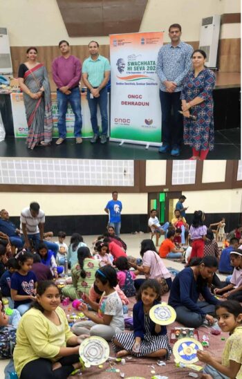 स्वच्छता ही सेवा अभियान के तहत, ओएनजीसी तेल भवन ने मुमकिन है डेवलपमेंट फाउंडेशन (एनजीओ) के सहयोग से आज कौलगढ़ रोड स्थित ओएनजीसी कम्युनिटी सेंटर में “बेस्ट आउट ऑफ वेस्ट” प्रतियोगिता का आयोजन किया गया। इस कार्यक्रम का उद्देश्य बच्चों को रचनात्मकता के लिए प्रेरित करना और कचरे के प्रबंधन के प्रति जागरूकता फैलाना था, जिससे वे बेकार सामग्रियों से अभिनव वस्तुएं तैयार कर सकें।