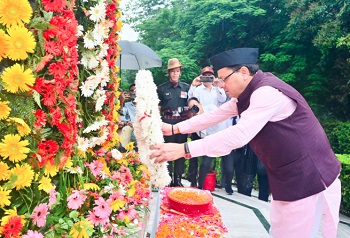 देहरादून: मुख्यमंत्री पुष्कर सिंह धामी ने कारगिल विजय दिवस (शौर्य दिवस) पर गांधी पार्क में आयोजित कार्यक्रम में शहीद स्मारक पर कारगिल शहीदों को श्रद्धांजलि अर्पित की। मुख्यमंत्री ने कारगिल शहीदों के परिवारजनों को भी सम्मानित किया। इस अवसर पर सैनिक कल्याण मंत्री गणेश जोशी, कैबिनेट मंत्री प्रेमचंद अग्रवाल, विधायक सविता कपूर, बृज भूषण गैरोला और निवर्तमान मेयर सुनील उनियाल गामा ने भी शहीद स्मारक पर कारगिल शहीदों को श्रद्धांजलि दी।